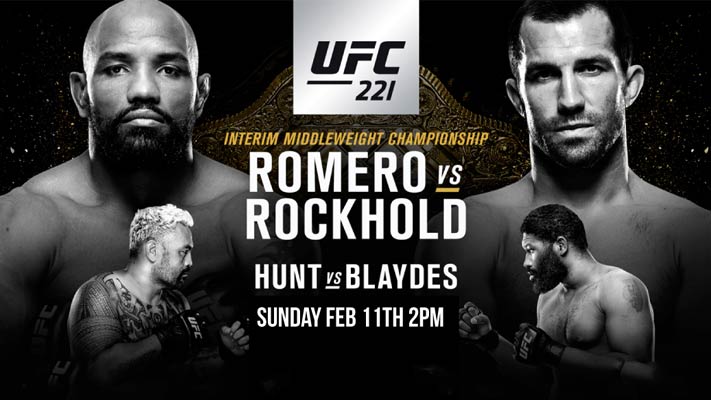 Main eventul galei UFC 221 din Perth, Australia, este lupta pentru centura de campion interimar la categoria Middleweight, dintre Yoel Romero și fostul campion Strikeforce și UFC la Middleweight, Luke Rockhold.