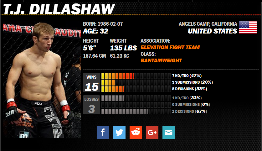 TJ Dillashaw intră în această luptă cu un palmares în MMA de 15 victorii și 3 înfrângeri, iar Cody Garbrandt cu un palmares în MMA de 11 victorii și 1 înfrângere.