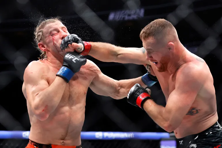 Justin Gaethje, fost campion interimar, a reușit să-și recâștige acest titlu după ce l-a învins pe Paddy Pimblett la capăt a 5 runde sângeroase, pline de lovituri de o parte și de altă.